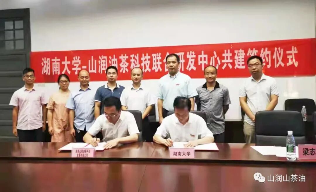 湖南山润油茶科技发展有限公司与湖南大学共建研发中心发表时间:2021-10-01 00:06 ![]() 盛世华诞·举国同庆 欢度国庆 热烈庆祝中华人民共和国成立72周年 ![]() 近日,湖南山润油茶科技发展有限公司与湖南大学共建联合研发中心签约仪式在湖南大学成功举行。湖南山润油茶科技发展有限公司欧阳鹏飞董事长、湖南大学校长助理李肯立教授、化学化工学院院长张晓兵教授、副院长梁志武教授及化学化工学院吴振军教授等领导出席了签约仪式。 湖南大学化学化工学院与湖南山润油茶科技发展有限公司就“生物质固废资源化处置和产业化应用技术”项目签订了合作协议。此次签约活动全面深化校企合作,加强优势互补、资源共享,实现校企合作双赢模式。公司致力于通过技术创新不断推进行业发展,依托学院教育科研优势,积极为山润油茶高值资源化产品开发、企业创新科技发展提供全方位的技术服务、人才支撑、成果转化,增强企业的核心竞争力。通过多层次、多形式、多领域深度合作共同培养经济社会发展需要的人才,推进产学研深度融合,更好的服务社会经济发展。 ![]() ![]() ![]() ![]() 国庆·快乐 ![]() ![]() END 往期推荐 我们都在悄悄的爱着彼此 不用“苇”装,同样出“粽” 爱了爱了,那片山 ![]() 上一篇一本没有纸张的活教材